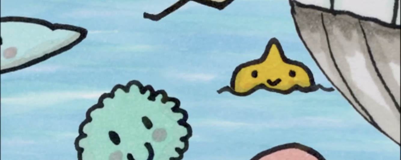 「シーズン・イン・ザ・サン」などの代表曲で知られ、常に“海”“夏”という不変のキーワードのもとに活動し続けてきたTUBE。昨年デビュー20周年を迎えた彼らが、「みんなのうた」に国民的愛唱歌である「海」へのオマー ジュを込めて書き下ろした歌で初登場する。子供達のコーラスと、壮大なストリングズアレンジともに、太陽の光溢れる、悠々としたTUBEサウンドに仕上げた。映像に挑むのは、絵本作家・作詞家・詩人としても活躍するイ ラストレーターの“326”こと、なかむらみつる。アニメーターのシイタケコとのコラボレーションにより、少年の瞳に映る四季の海を眩しく描きあげる。
