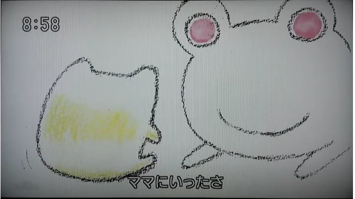 「可愛い子には旅を」と言うが、いざ自分の子となるとなかなか難しい。でも、このカエル君には、無限の勇気と冒険心があり、それを信じているパパもママも笑顔で送り出します。容赦なくテラテラ照りつける太陽にも、メラメラ怒り をもやしてつついてくる天敵にもめげず、前を向いてケラケラと鳴きながら笑顔で一生懸命生きるカエル君の姿。その健気な姿を通して、テレビの前の子供たちには勇気を出して踏み出した先にきっと見えてくる世界の広がりに、親御さん達には子供の力を信じる勇気に気づいてくれたら、という願いを込めました。かの「おしりかじり虫」同様、作詞・作曲・映像を一人のアーティストが手がけるユニークな作品です。国内外で数々の賞を受賞してきた広告業界の風雲児 的逸材、内藤まろの「みんなのうた」初登場作。