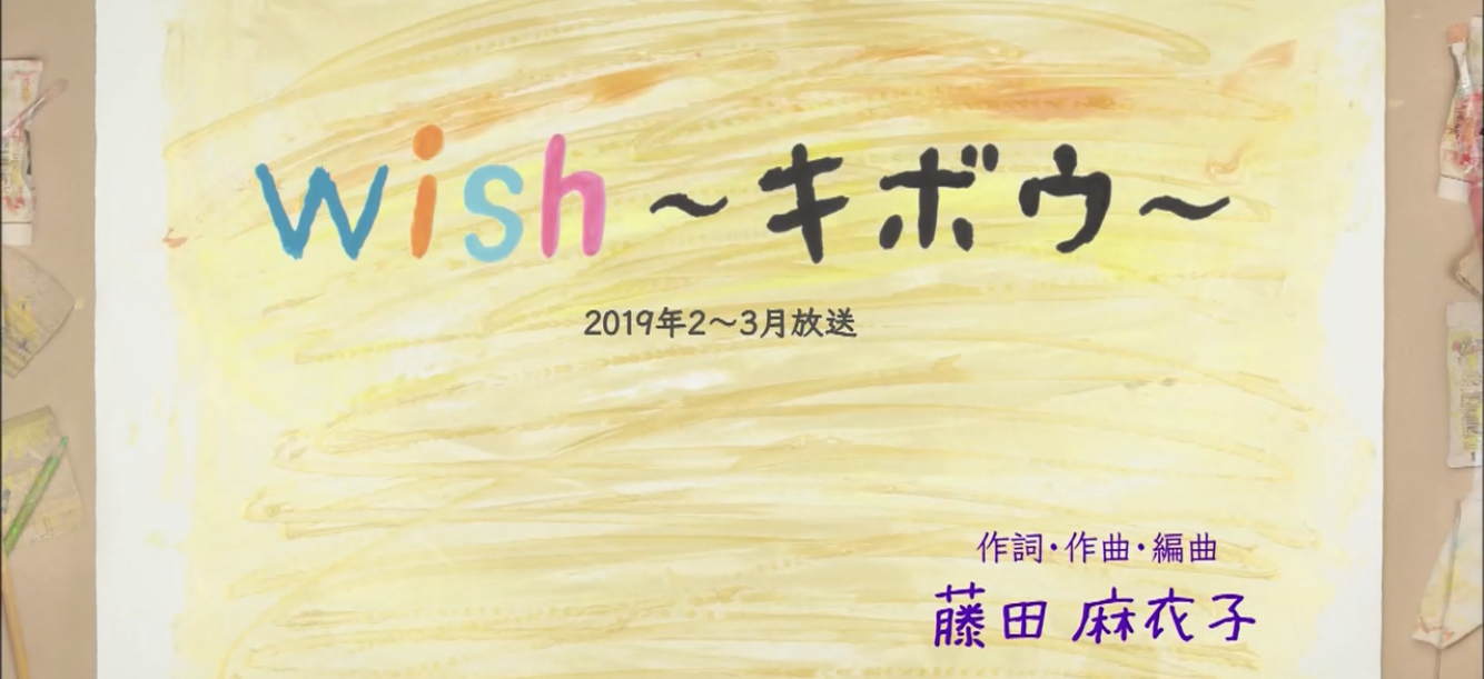このうたは、完成までに長い時間がかかりました。 当初、作詞・作曲・うたの藤田さんは、自分自身の悩みや迷い、壁にぶつかったり、心が折れてしまいそうな思いから抜け出すために“希望を持とう”という思いを込めて『希望』と題した歌を作り上げました。 しかし、近年、各地で災害であったり、さまざま悲しい、辛いことが次々と起こり、それぞれの場所で、それぞれの人が、いろんな思いを抱えて日々を生きている。―そんな彼らに“希望を持とう”という歌はどう響くのだろう か…。いま人々に届く「希望」の形とは、“希望を持てたら…”と願うことが精一杯ではないか?という、番組サイドの問いに応え、何度も歌を練り直し生まれたのが、この『wish ~キボウ~』という歌です。 思い、メッセージが凝縮された歌だけに、出来る限りフラットな感性で映像化すべく、世界的な絵本作家・荒井良二さんに依頼。歌を聴きながら抱くイメージ・心象風景を、感じたままに描く「ライブペインティング」というインス タレーション手法でビジュアル化します。 【 ライブペインティング/荒井良二さんより 】 この「wish ~キボウ~」を描くのに、ライブペインティングで、何があっても進んでいくんだ、というイメージを見せられたらいいなと思いました。今動いている、という感覚です。勢いとダイナミックさ、その反対の繊細さも含め て。 歌詞に出てくる「旅は続く」というのも、僕の中でキーワードでした。旅ってどんどん流れていくものですよね。うまくいかなくても、思い描いたように進めなくても、何があっても旅は続いていく。その繰り返しをイメージしまし た。